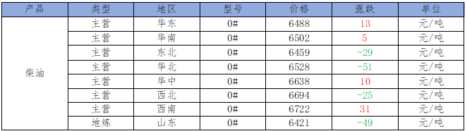 预计下一工作日主营柴油价格小幅调涨;地炼厂柴油价格或盘整运行。